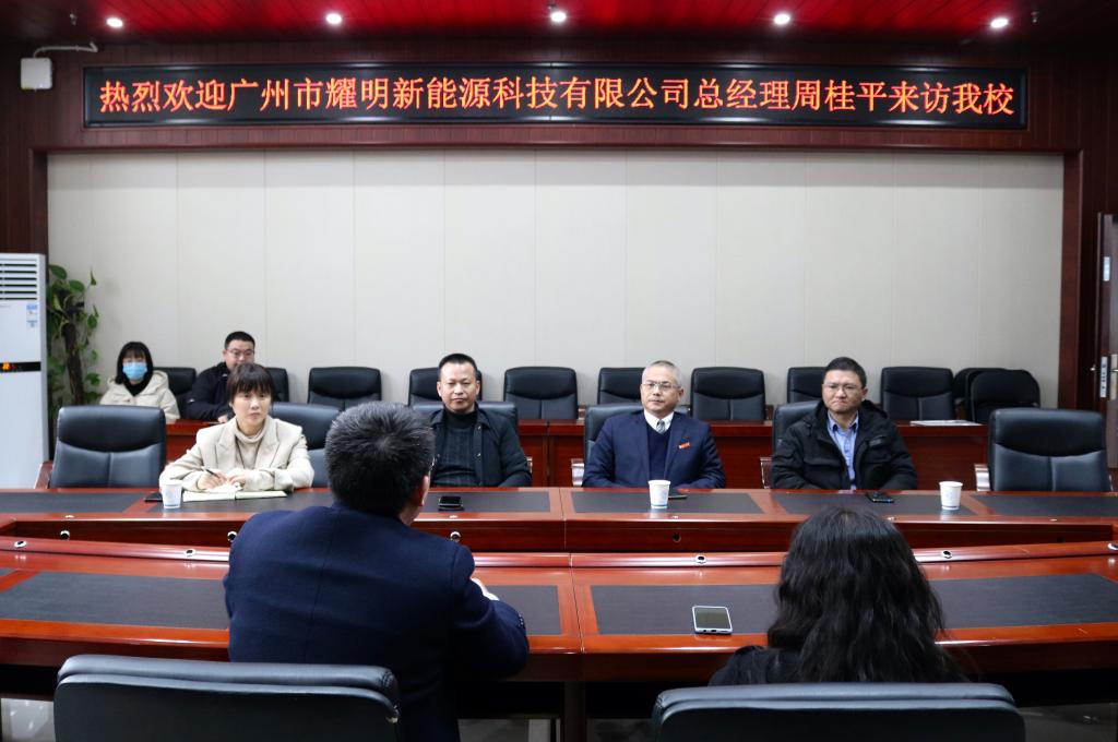 2020年12月28日,best365唯一官方网站与广州市耀明新能源科技有限公司校企战略合作洽谈会在教学大楼12楼会议室举行,校党委副书记张平、广州市耀明新能源科技有限公司总经理周桂平出席了会议。会议由发展规划与校企合作处处长刘文华主持。双方就校企人才培养、产学研、建立实习就业基地、设立奖学助学基金等进行了深入交流并达成了共识。