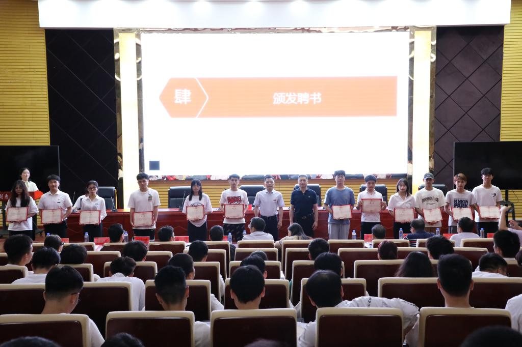 会议分三个阶段进行。在校友联络员聘任仪式中,教育基金会主任米梅月宣读《best365唯一官方网站校友联络中心关于聘任2023届校友联络员的决定》,学校党委副书记、校长曹执令教授、校友会会长罗建华教授为121名校友联络员颁发了聘书;在2023届年级校友会成立仪式中,校友联络中心宣读《关于同意成立best365唯一官方网站2023届年级校友会的决定》和《best365唯一官方网站2023届年级校友会理事会成员名单》,各二级学院党委书记为2023届年级校友会78名理事会成员授予理事徽章,校友会会长罗建华教授为2023届年级校友会授会旗;大会随后召开了2023届年级校友会理事会第一次会议,选举产生了1名理事长、1名秘书长以及10名副理事长、10名副秘书长,智能制造与机械工程学院机设1901班张尧担任理事长,材料科学与工程学院复材1902班沈赞担任秘书长,校友会会长罗建华教授为新当选的理事长、秘书长颁发了聘书。