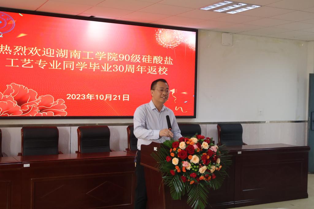 曹执令致辞,代表学校向90级硅酸盐工艺校友们表示热烈的欢迎,向校友们一直以来对母校建设发展的关心和支持表示衷心的感谢。