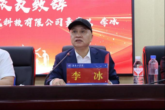 曾广胜在致辞中表示,当前正值“雁回湖工谋发展,校友赋能创未来”活动之际,“李冰”校友奖教奖学助学金的设立是校友以实际行动支持母校、反哺母校的典范,充分体现了一位优秀校友企业家高度的社会责任担当,有助于激励更多的校友积极参与母校的建设。他希望同学们能够铭记李冰学长的深情厚爱,并将其转化为持续前行的动力;希望老师们牢固树立崇高的道德风范,修身齐家,成为学生们成长道路上的指路明灯,既要提高学生的文化素质,又要引导学生立志报国;希望校友们能够继续关心并支持母校的建设与发展,促进母校和校友企业共同发展。