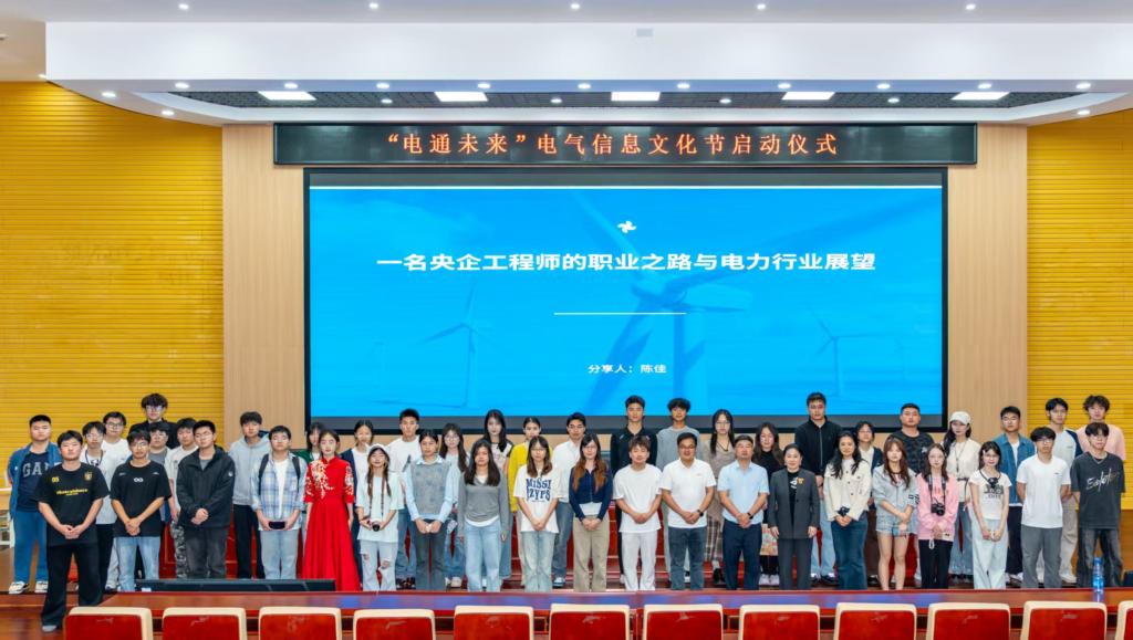 讲座中,陈佳结合自身从校园学子成长为央企技术骨干的奋斗历程,深情讲述深耕风电领域、坚守工程一线的职业故事,生动诠释电气从业者的责任担当与工匠精神。他立足行业前沿,系统解析当前电力结构变革与新能源发展趋势,帮助同学们明晰专业前景、拓宽专业视野。