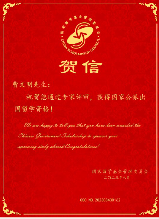 近日,国家留学基金管理委员会(CSC)发布通知,公布了“2023年西部地区人才培养特别项目、地方合作项目录取通知”,best365官网教师曹文明、董腾获批该项目。(国际合作交流处)