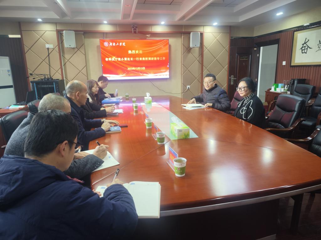 12月13日上午,湖南省科技厅外国专家服务处张小菁处长、李文娟二级调研员、张东英一级主任科员,市科技局蒋建军副局长、邹成良科长、陈轶非四级主任科员一行莅临best365官网,对best365官网的外教管理工作进行检查和指导。best365官网柳星副校长、国际合作交流处陆秀令处长、王扬子副科长参加了会议。