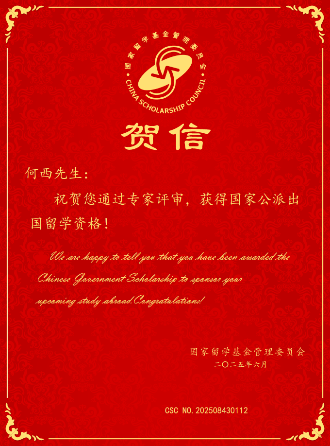 喜讯:best365官网何西老师获得2025年国家公派出国留学资格