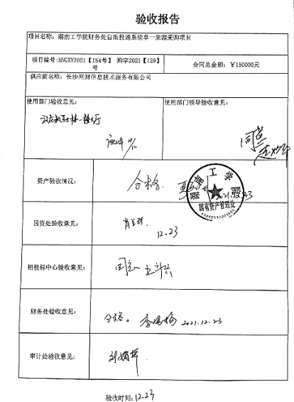 2021年12月关于HNGXY2021【154】号 购字2021【129】号采购项目验收情况公告