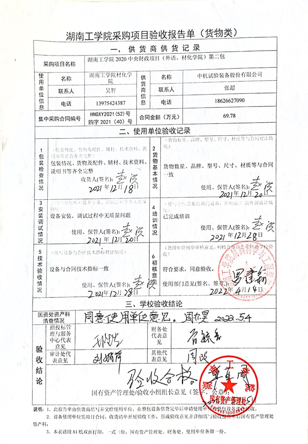 根据国有资产管理处对采购项目的验收安排,2022年4月15日国有资产管理处组织招投标管理与服务中心、审计处、财务处、学科建设与发展规划处以及使用部门代表对供应商的货品进行现场验收。