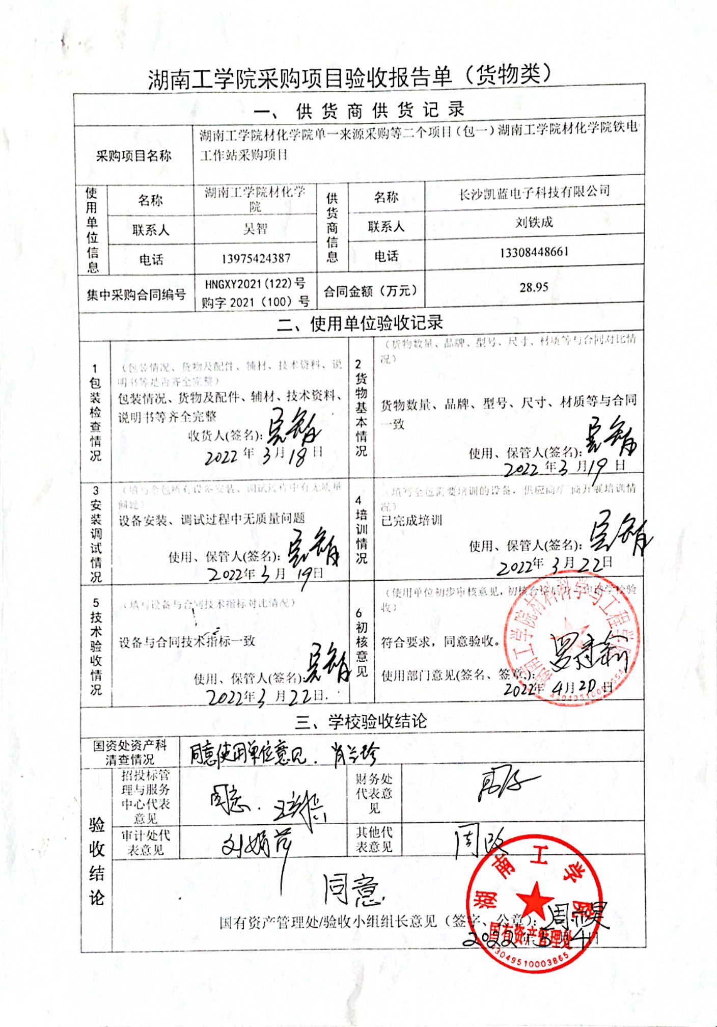 2022年4月关于HNGXY2021【122】号 购字2021【100】号采购项目验收情况公告