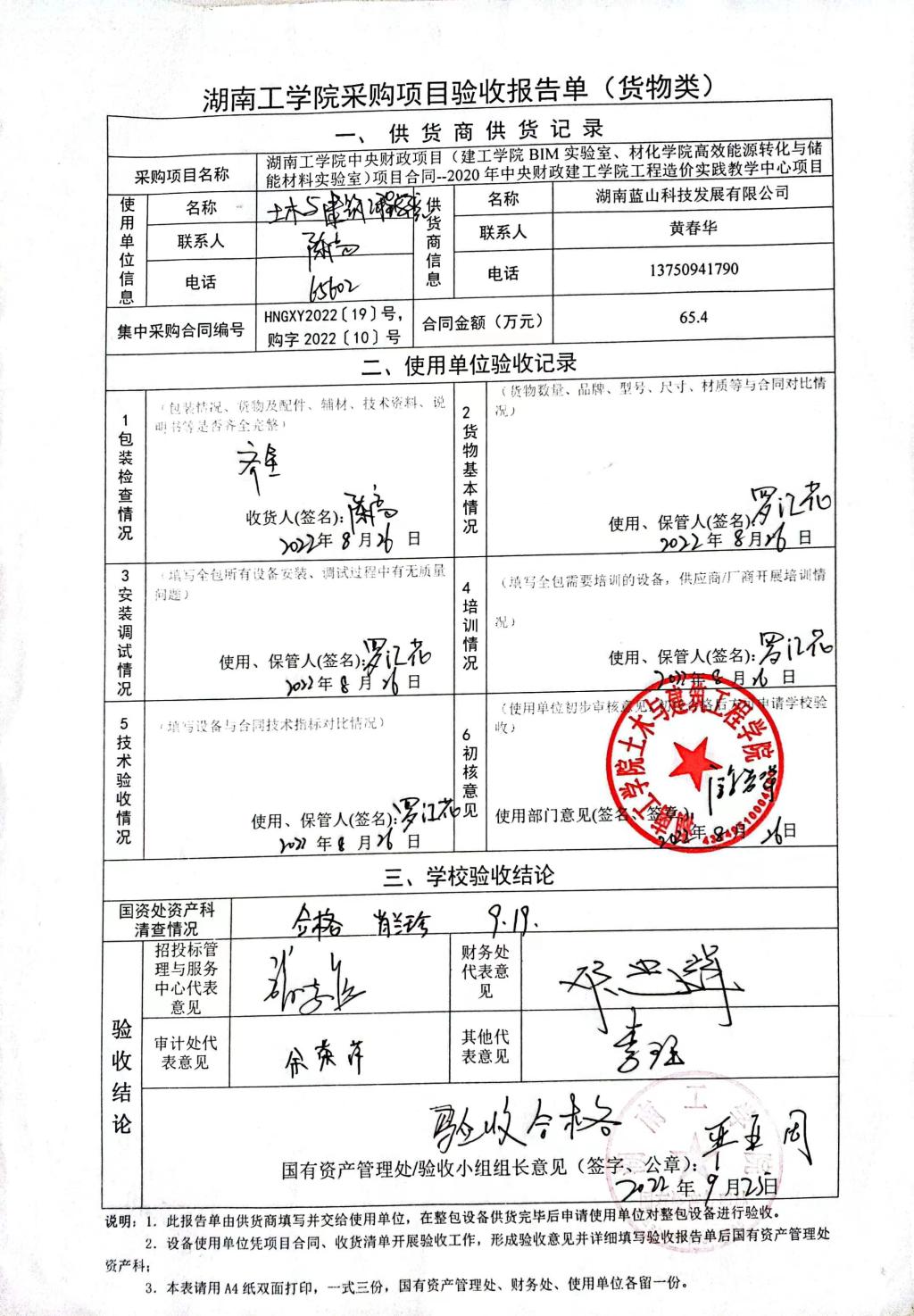 2022年9月关于HNGXY2022【19】号 购字2022【10】号采购项目验收情况公告