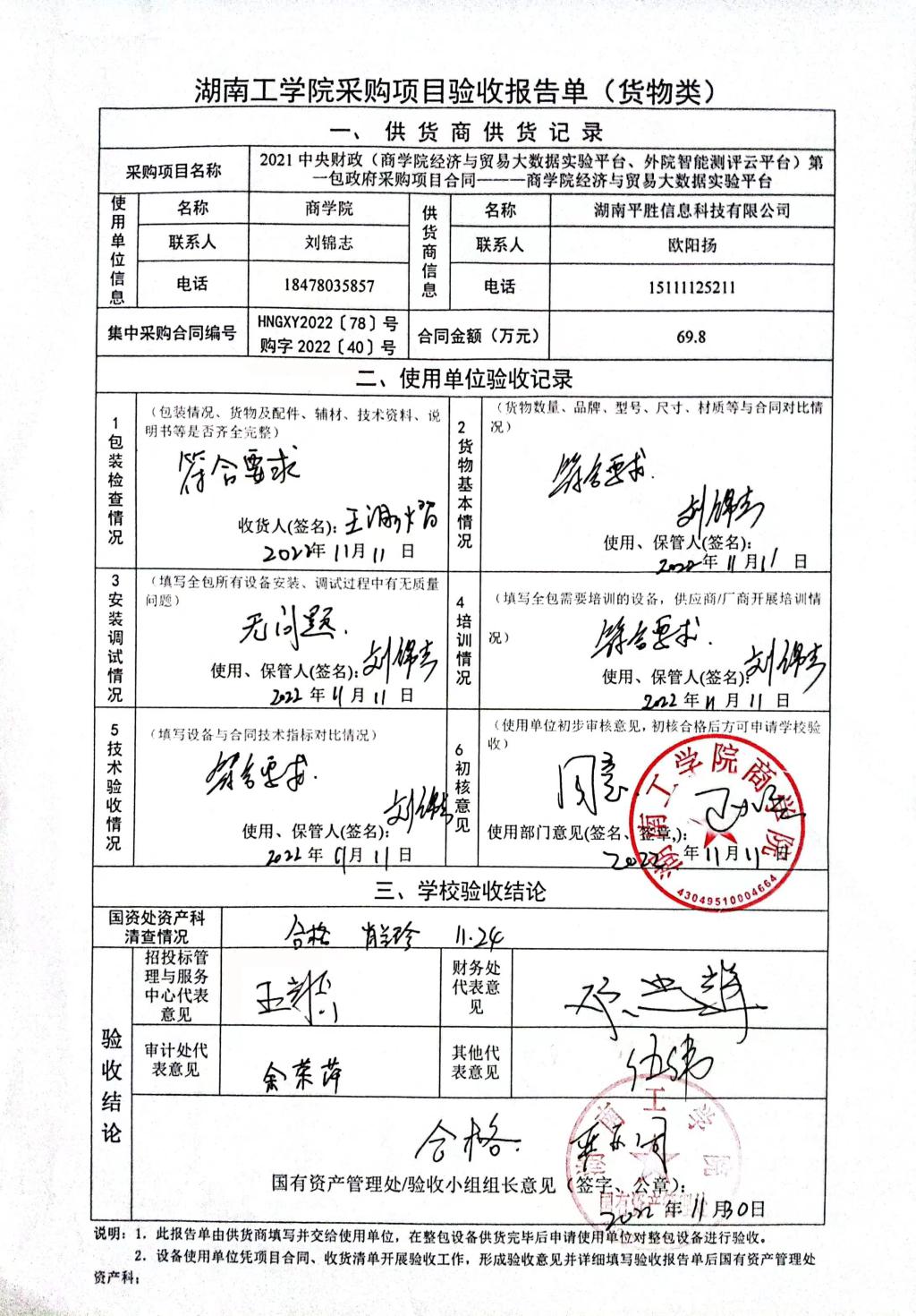 2022年11月关于HNGXY2022【78】号 购字2022【40】号采购项目验收情况公告