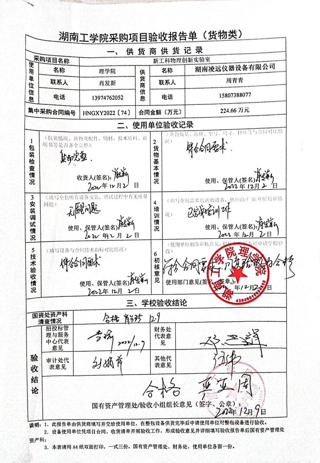 2022年12月关于HNGXY2022【74】号 购字2022【36】号采购项目验收情况公告