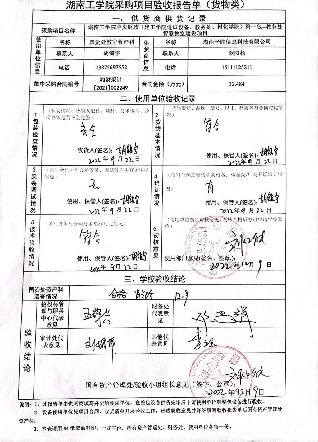 2022年12月关于湘财采计【2021】002249号项目验收情况公告