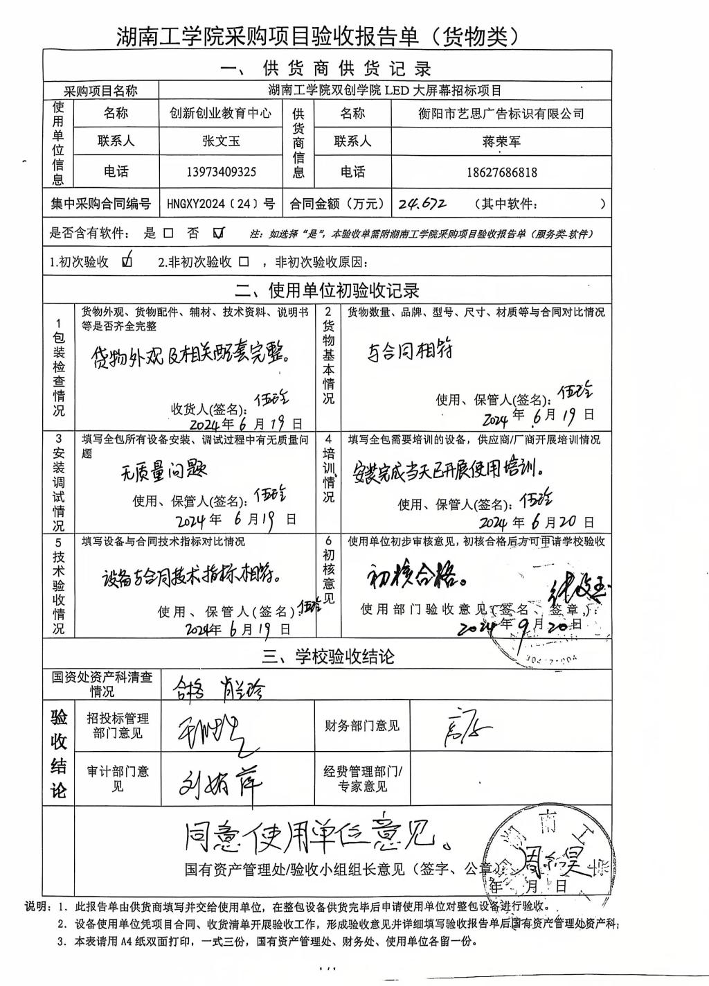 2024年10月关于HNGXY2024【24】号 购字2024【11】号采购项目验收情况公告