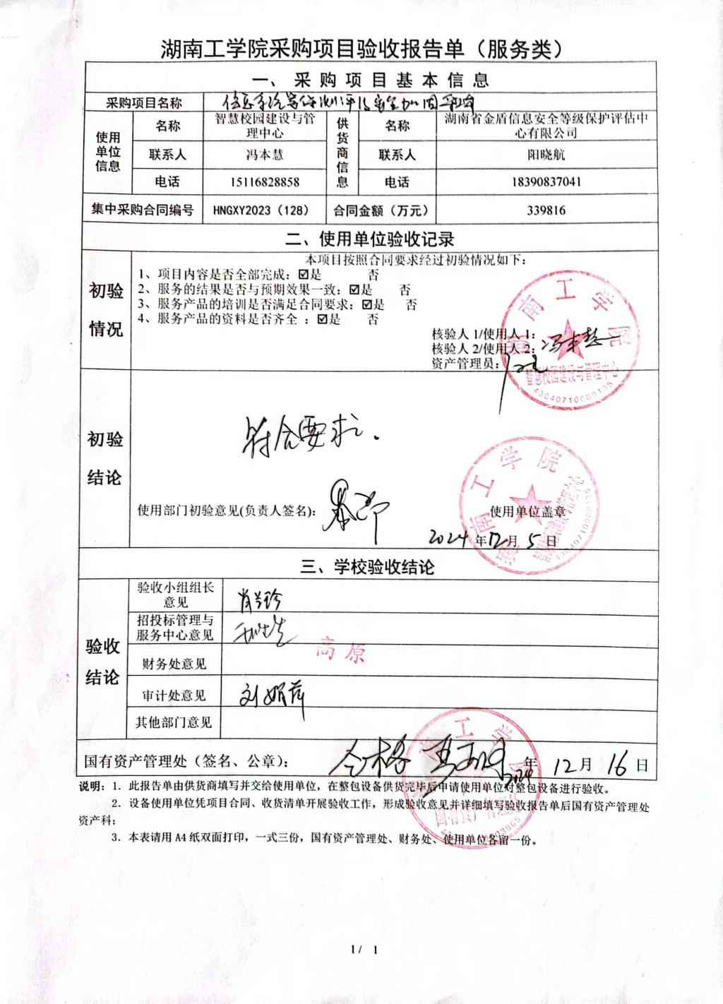 2024年12月关于HNGXY2024【128】号 协字2024【27】号采购项目验收情况公告