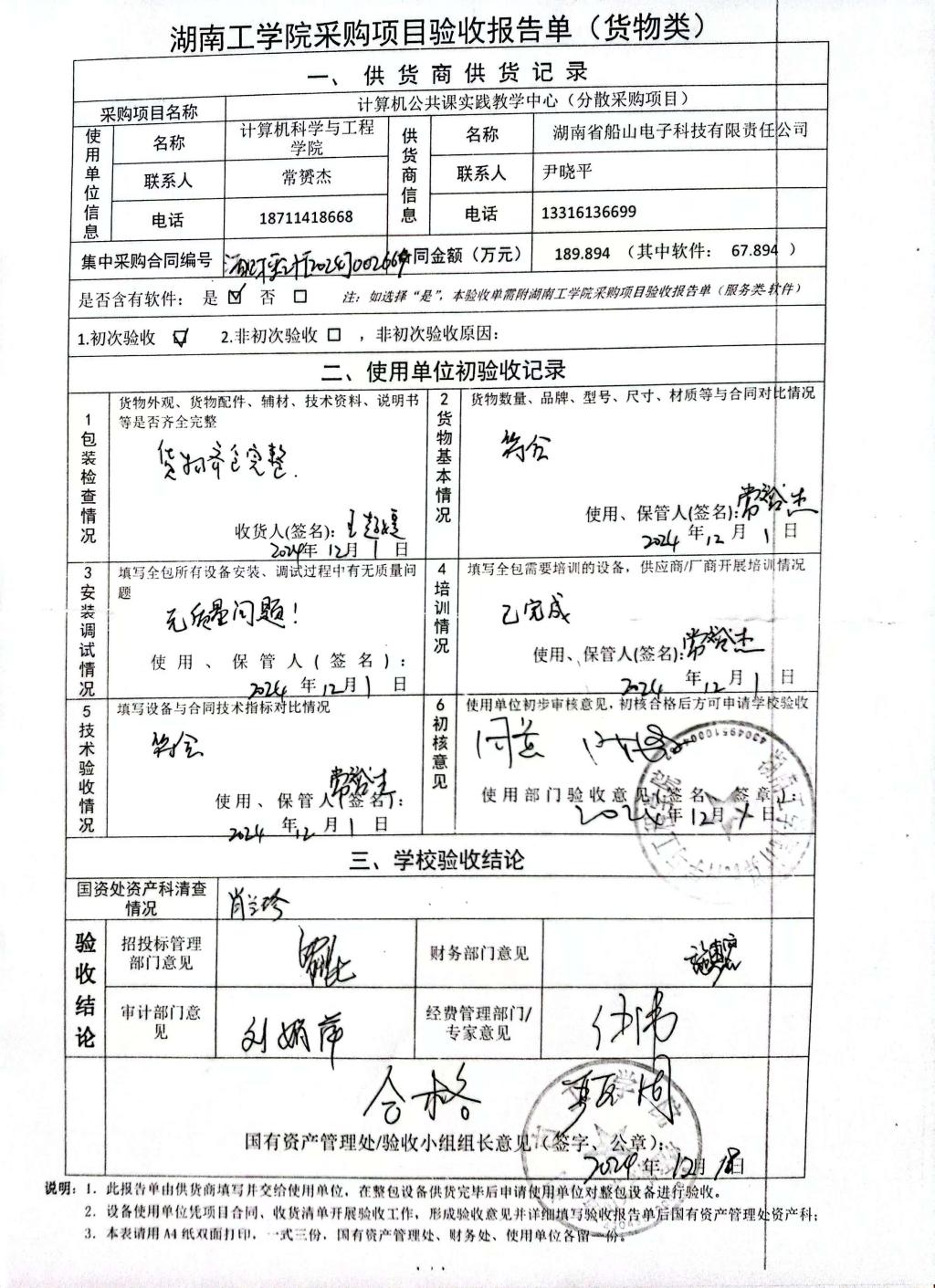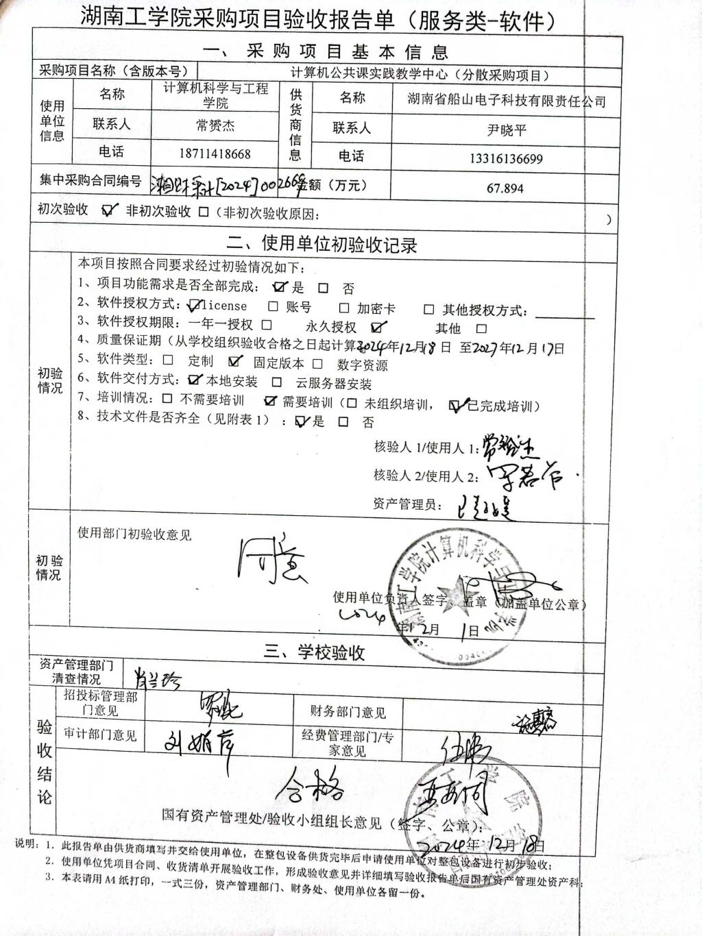 根据国有资产管理处对采购项目的验收安排,2024年12月18日国有资产管理处组织招投标管理与服务中心、审计处、财务处、教务处以及部门代表对供应商的项目进行现场验收。