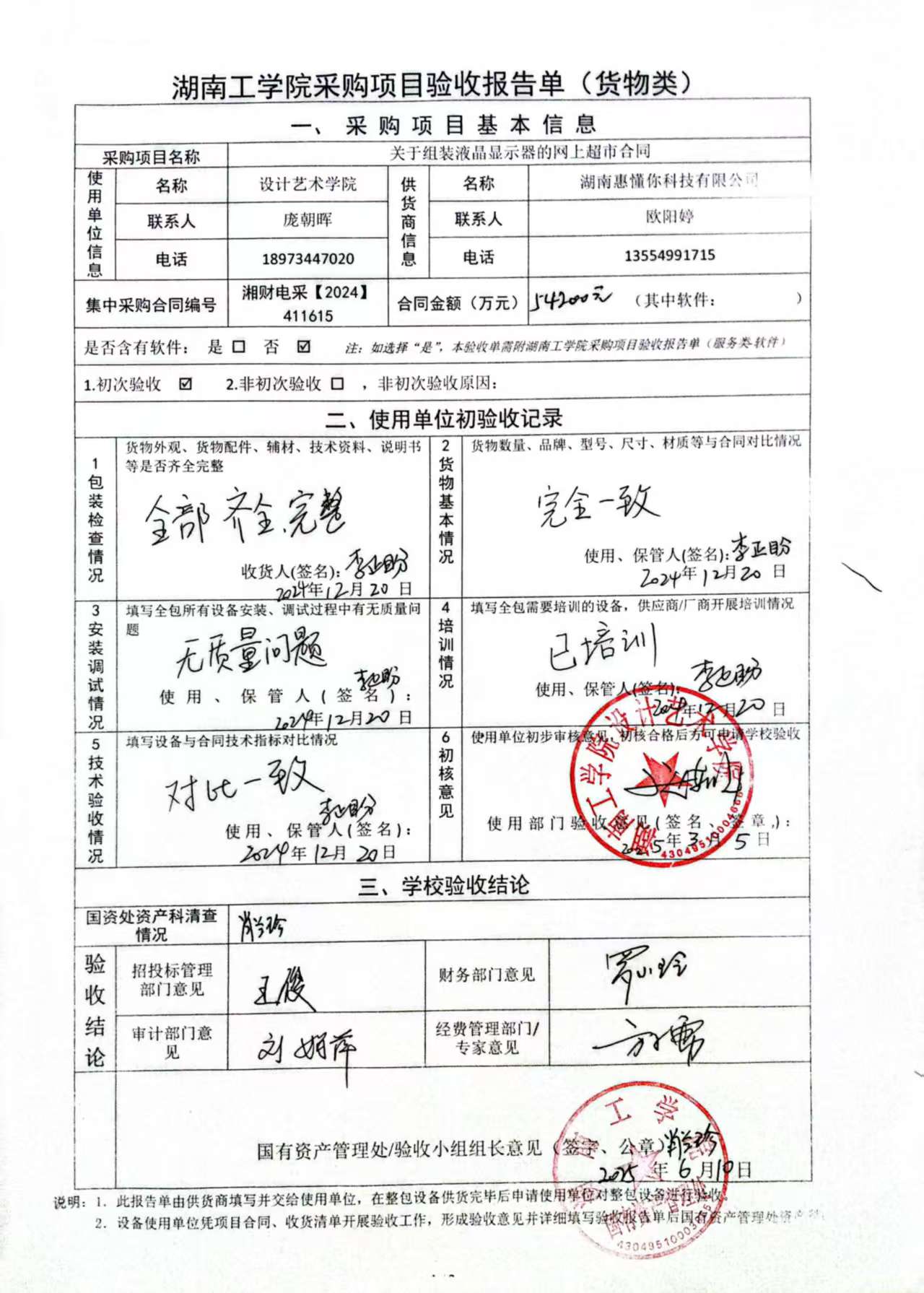 2025年6月关于湘财电采【2024】411615号项目验收情况公告