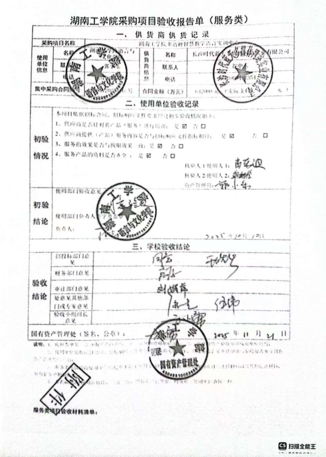 根据国有资产管理处对采购项目的验收安排,2025年11月14日国有资产管理处组织招投标管理与服务中心、审计处、财务处、教务处、智慧校园建设与管理中心以及使用部门代表对供应商的项目进行现场验收。