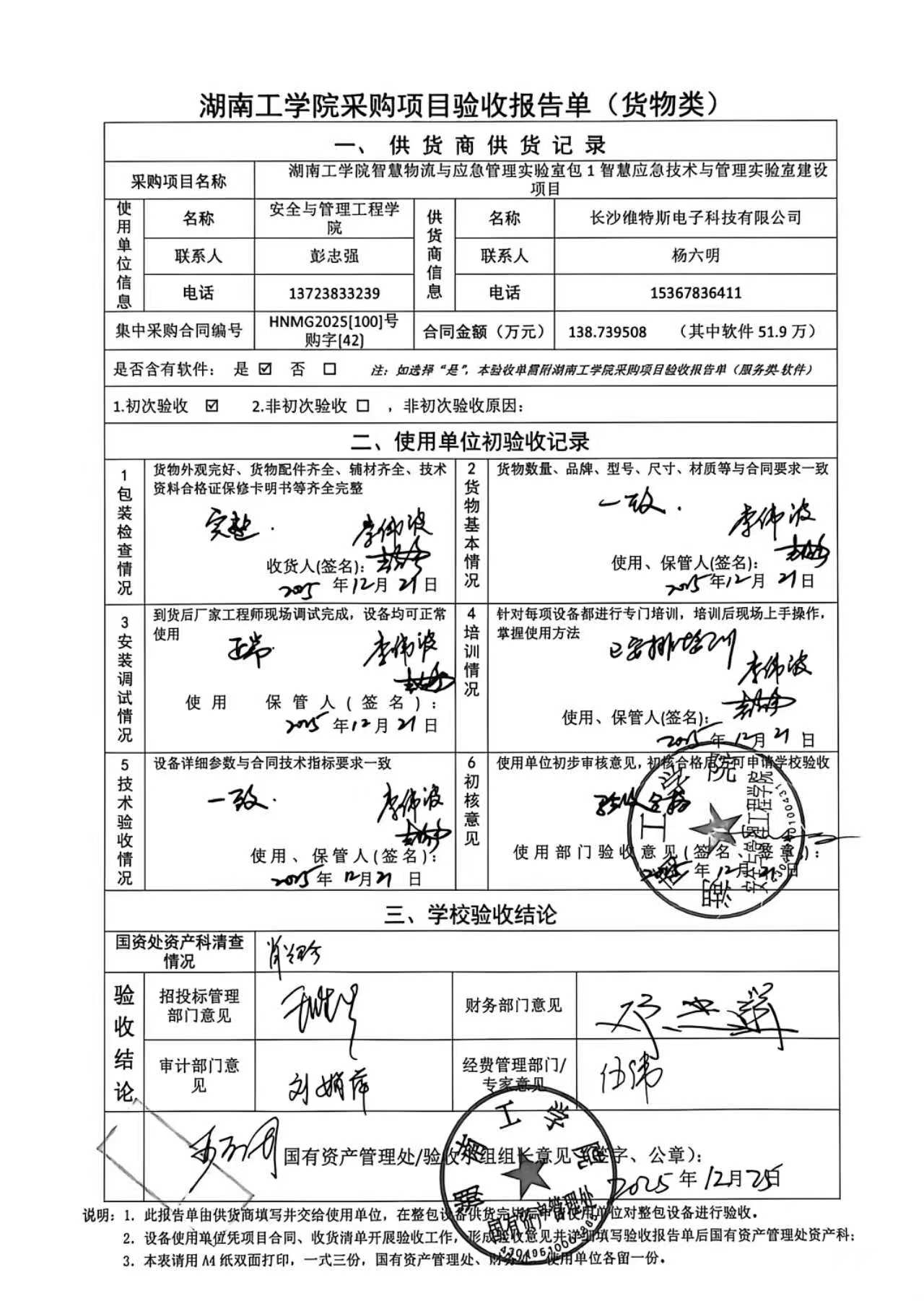 2025年12月关于HNGXY2025【100】号 购字2025【42】号采购项目验收情况公告