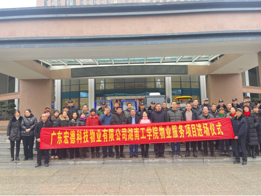 2024年2月3日上午,广东宏德科技物业有限公司(以下称“宏德科技物业”))进驻best365唯一官方网站入场仪式在教学大楼阳光大厅前举行。学校后勤基建处、学生工作部、保卫部、国有资产管理处等部门相关负责人出席,宏德科技物业驻best365唯一官方网站项目部经理及员工代表参加了入场仪式。