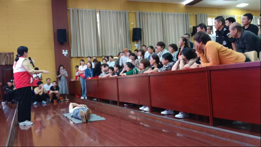 本次培训由衡阳市红十字会培训讲师黄霞授课。培训过程严格按照《中国红十字会红十字救护员标准化培训教学大纲》执行,教学内容主要包括救护概论、心肺复苏理论、AED的使用、气道异物梗阻的急救方法,以及中暑的预防与治疗。培训方式包括理论授课、分组实操和考核三部分。