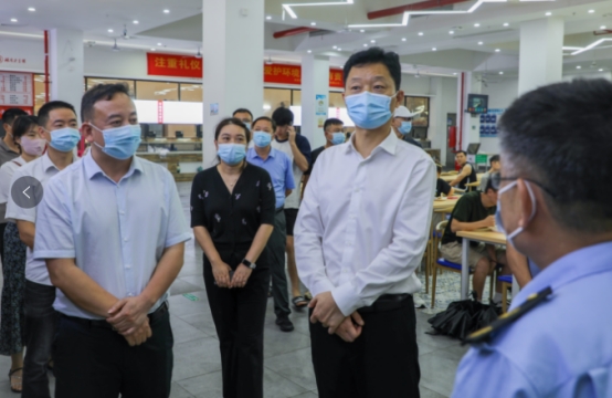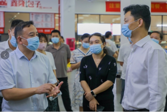 6月24日下午,市委常委、市委秘书长胡果雄一行对我院润泽学生食堂进行督导调研。市委副秘书长段志阳、市委副处级督查专员唐进标、市市场监督管理党组成员、副局长龙华参加调研督导。best365唯一官方网站党委副书记、校长曾广胜,党委委员、副校长黄红卫,后勤基建处处长贺旭等人陪同督导调研。