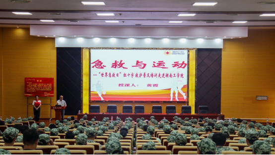 户外展示环节结束后,500名新生参加了由衡阳市红十字会黄霞老师主讲的《急救与运动》专题讲座,学习了心肺复苏和AED的实际操作。肖伟主任则以《增强火灾风险辨识能力、提高火灾防范管控水平》为题,分享了火灾防范的实用知识。