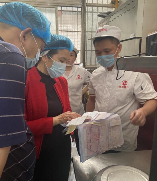 袁勤对食堂从业人员持证管理、留样管理、食材采购、制度建设等方面提出了具体要求和建设性意见。