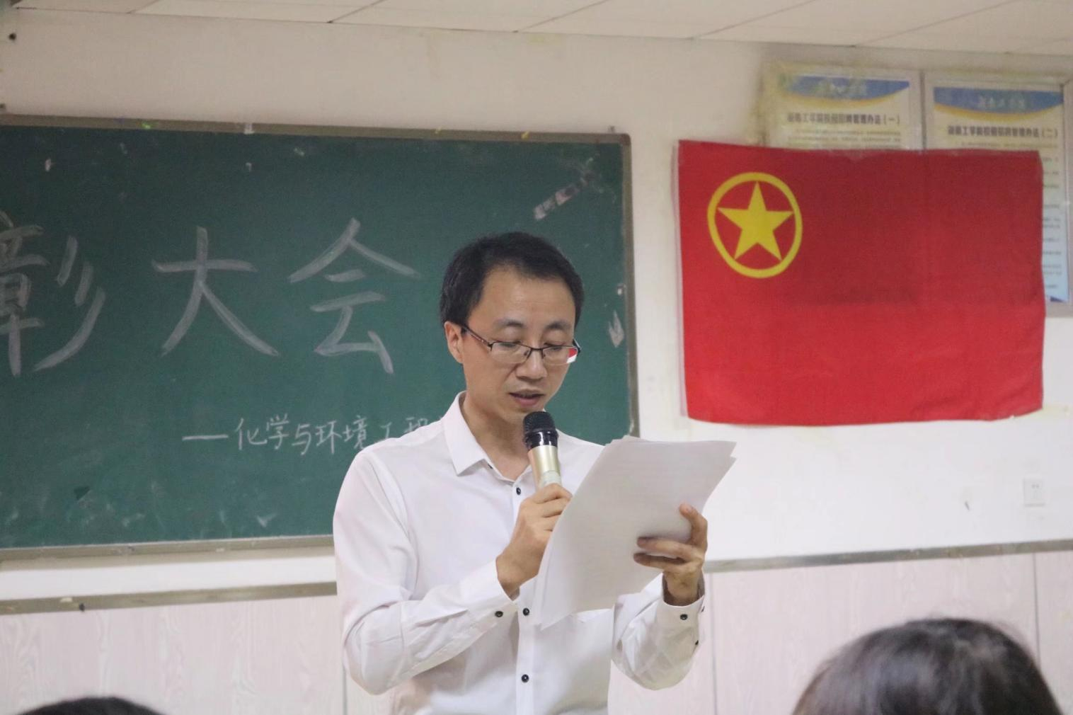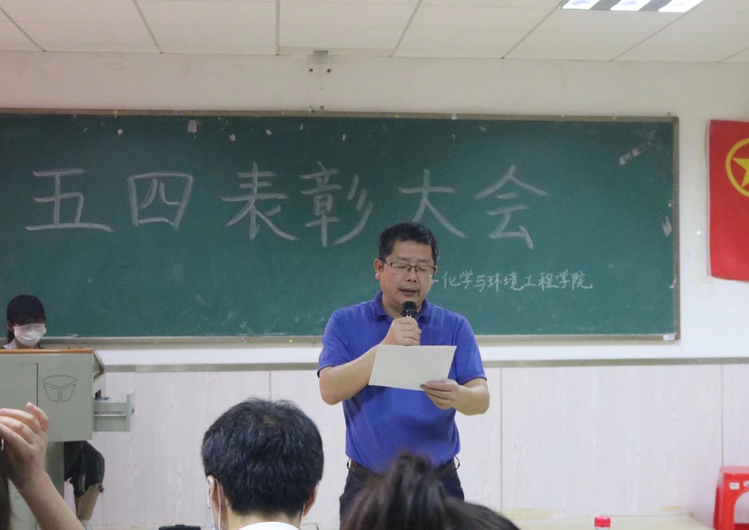 5月6日晚7点,化学与环境工程学院在1301举行五四表彰大会,院党委书记周立、院长辛俊亮、党委副书记蔡玲、副院长黄俊歆、副院长刘宁、学工办主任兼分团委书记陈凌霄、全体辅导员出席会议,受表彰同学和全体学生干部参加会议。