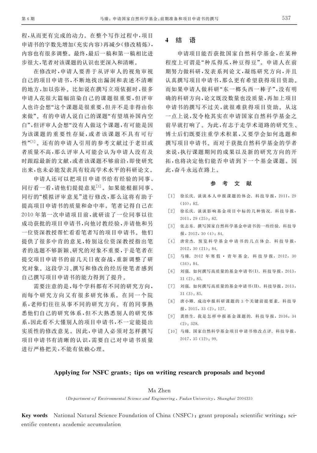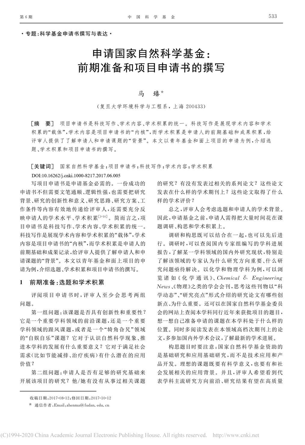 申请国家自然科学基金前期准备和项目申请书的撰写——复旦大学 马臻