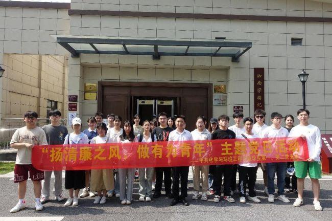 5月25日下午,化学与环境工程学院学生第一、第二党支部在湘南学联旧址廉政文化基地、湘南学联纪念馆、退省庵廉政文化基地开展以“扬清廉之风,做有为青年”为主题的党日活动,学生第一党支部书记吕海华以及学院全体毕业生党员参加此次活动。