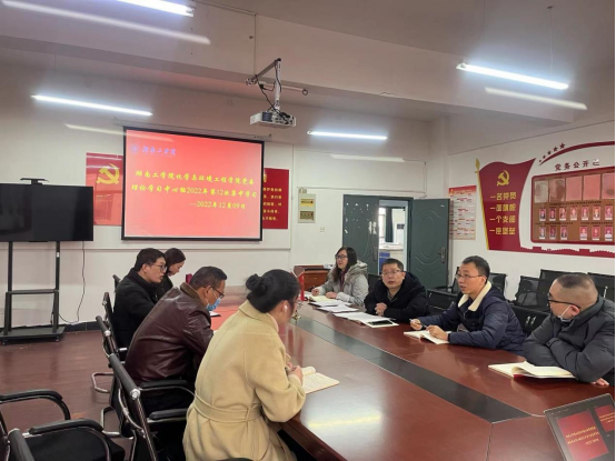 12月9日下午,2022年化学与环境工程学院党委理论学习中心组第12次集中学习在1310举行。会议由学院党委书记周立同志主持,院党委理论学习中心组全体成员参加。