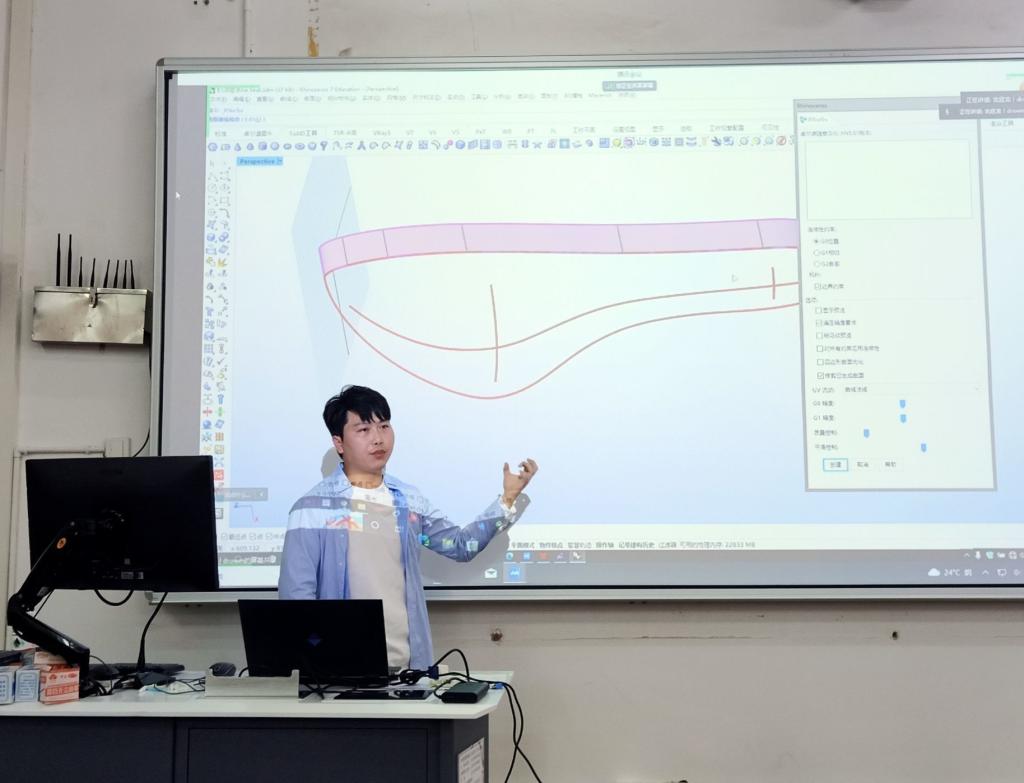 沈应龙讲座的题目为参数化辅助设计表达,开篇介绍了AI人工智能在设计表达领域的创新应用,接着对多重曲线、二维纹理和3D肌理的参数化建模原理进行了由浅入深地讲解,并现场展示了参数化建模技术快速与便利的效果。沈应龙先生在讲座中强调了计算机辅助技术在制作设计类作品集时的重要性,鼓励在座学生课后加强此类技术的学习。