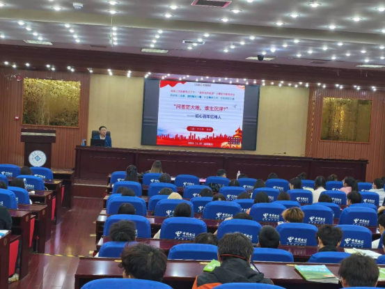 为了让师生深度解读best365官网2024年“一校一书”精读图书,2024年11月7日下午,图书馆在蔡伦报告厅围绕校长曾广胜推荐的《恰同学少年》举行了雁鸣夫子书·“我和我的祖国”主题读书教育活动(奋进讲坛第61期)。本次讲座邀请湖南第一师范学院刘立勇教授作为主讲嘉宾,讲座由团委副书记许幸主持,300多名师生参加了讲座。