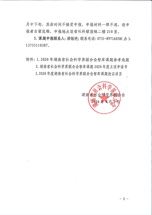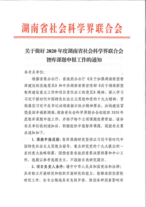 转发:关于做好2020年度湖南省社会科学界联合会智库课题申报工作的通知