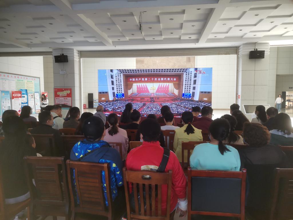 图书馆收看中国共产党第二十次全国代表大会开幕会。