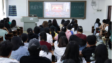 辅导员组织青年学生收看中国共产党第二十次全国代表大会开幕会。(党委宣传部)