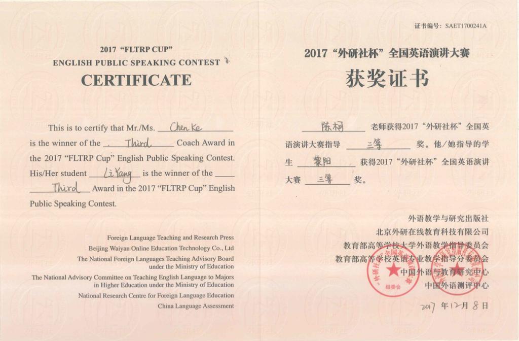 柳星:基于“三全育人”理念的外语课程思政建设成效明显。近5年来我院获评1个省级外语课程思政示范基地;立项了1个省级“三全育人”综合改革试点单位;获得了外语课程思政教学竞赛全国二等奖1项、省级一等奖1项、二等奖2项、三等奖2项;立项了1个校级课程思政示范中心、1个外语课程思政虚拟教研室、3门校级课程思政示范课程。2.突出了学生“五力”培养,学生专业技能水平处于同类院校较好水平。近年来,学生参加各类学科竞赛获省级三等奖以上荣誉267项,其中国家级一等奖1项、二等奖1项、三等奖3项、团体一等奖1项,省级个人一等奖74项。3.创新了“产教研赛创”五位一体实践教学模式。近年来,学院建设了14个实践教学基地;获批了1个省级创新创业中心;学生参加各类学科竞赛获省级三等奖以上荣誉267项;学生主持大学生创新创业训练项目47项,其中国家级立项10项、省级立项20项,主持了3个校级创新创业孵化基地入驻项目。4.强化了师资队伍建设,打造了高素质创新型教师队伍。近年来,我院教师获各级教学竞赛奖64项,其中国家级5项,省级18项;出版了专著5部;主编教材3部;主持省部级教改项目22项,科研项目39项;发表高水平教研教改论文30余篇;立项了25门校级课程改革。