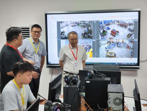 何建雄一行详细了解学生竞赛进展情况、饮食起居和生活情况,并与指导老师进行亲切交流巡视了全省竞赛场地的视频监控中心,仔细查看了全省各赛场的实时监控画面,详细了解赛场布局、设备配置及运行状况。