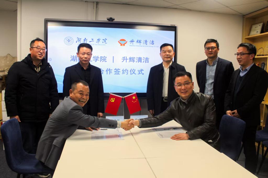 在升辉清洁集团,双方签署低空经济产业学院共建框架协议,围绕无人机、低空物流与应急等领域达成产学研合作意向,曹执令代表学校向企业颁发了校庆捐赠证书。