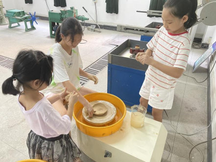 活动主题为:服务科技,贯彻“双减”,由新型建筑材料研究院策划组织。活动主要面向学校青年教职工子女,活动中开放了陶瓷制备实验室,并由袁龙华老师讲解示范了陶瓷制品成型中的注浆成型和拉坯成型两种工艺。小朋友们表现出浓厚的兴趣,在袁老师讲解示范后,小朋友们纷纷动起手来,制作相关样品。