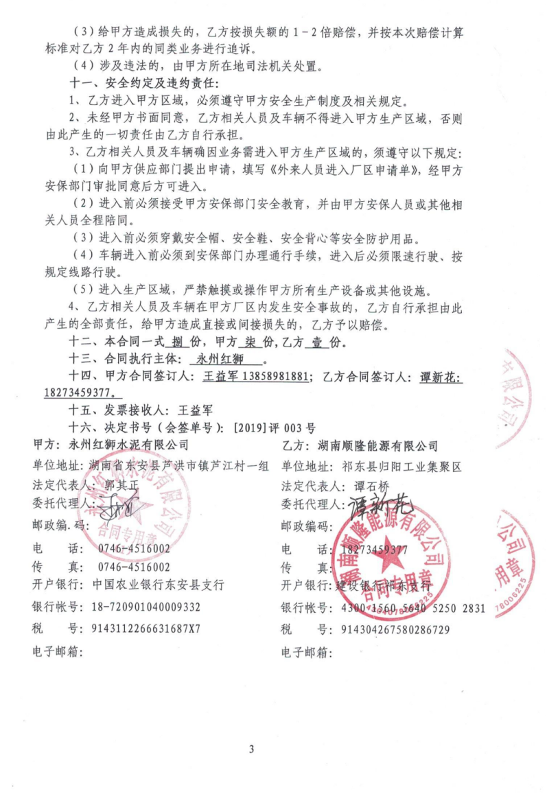 永州红狮水泥有限公司与湖南顺隆能源有限公司 |