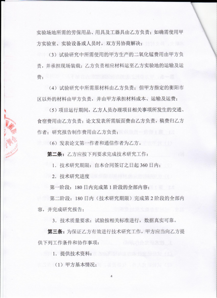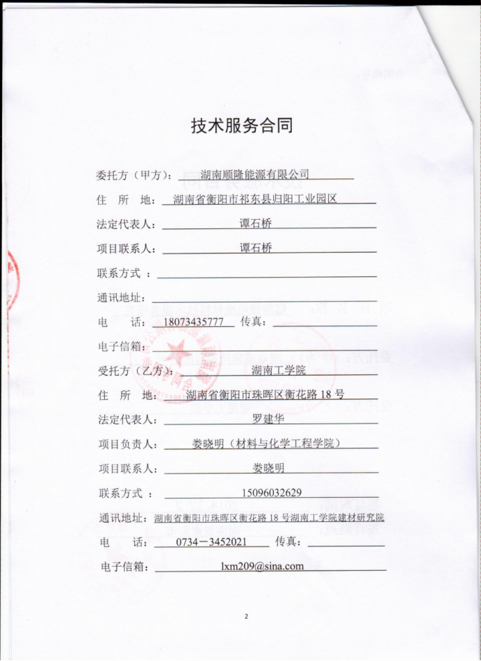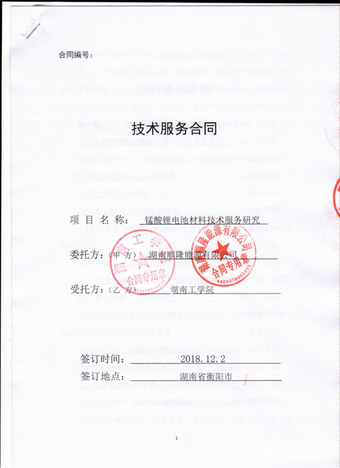 技术服务合同—锰酸锂电池材料 技术服务研究 |
