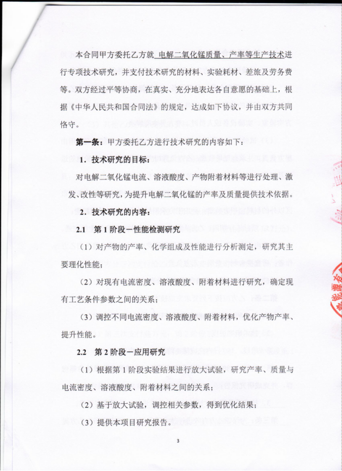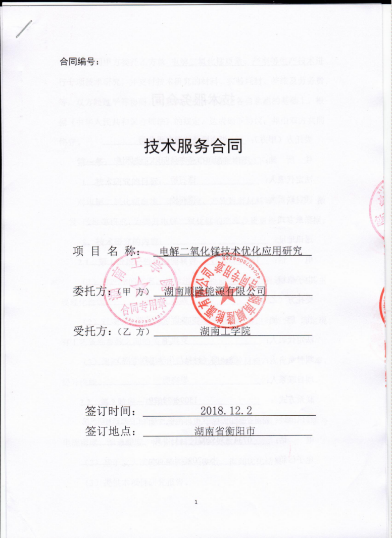 技术服务合同—电解二氧化锰 技术优化应用研究 |