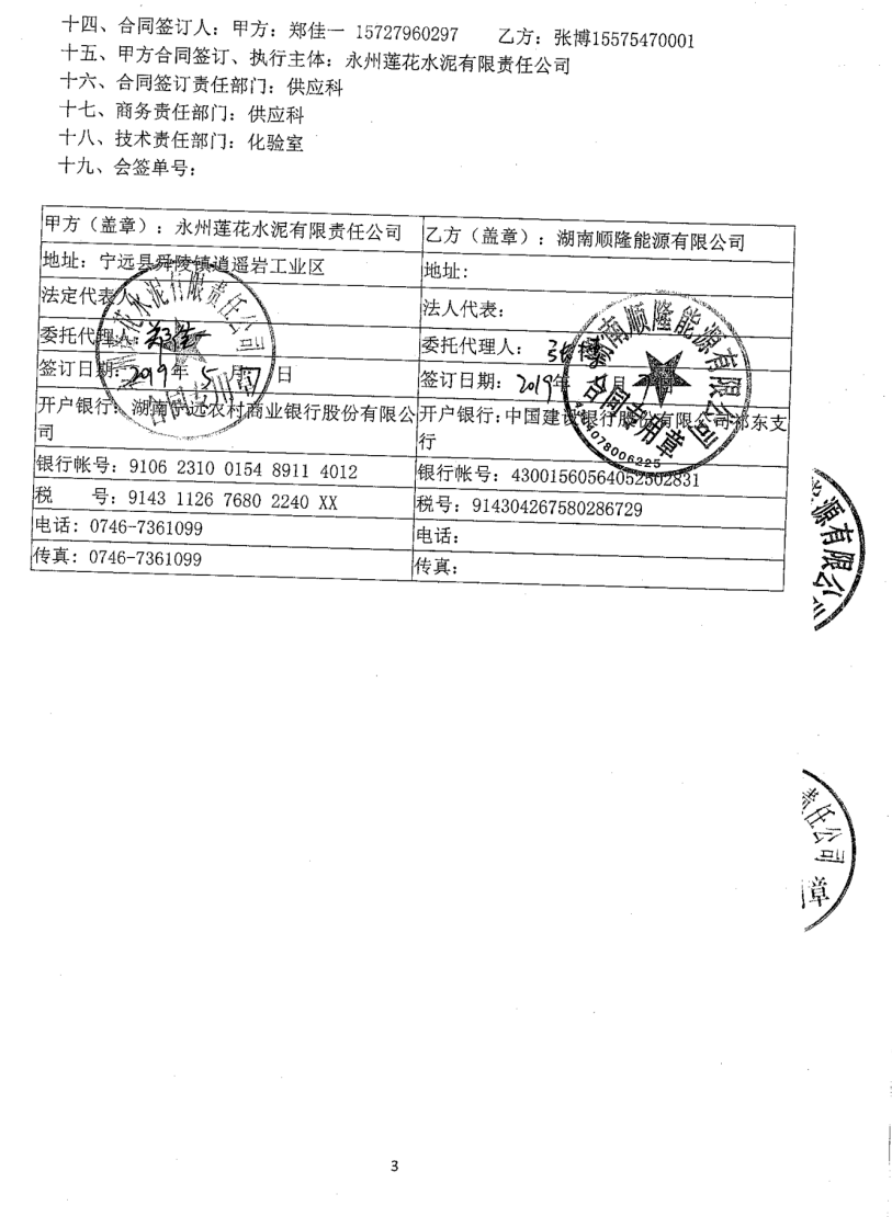 永州莲花水泥有限公司与湖南顺隆能源有限公司 |