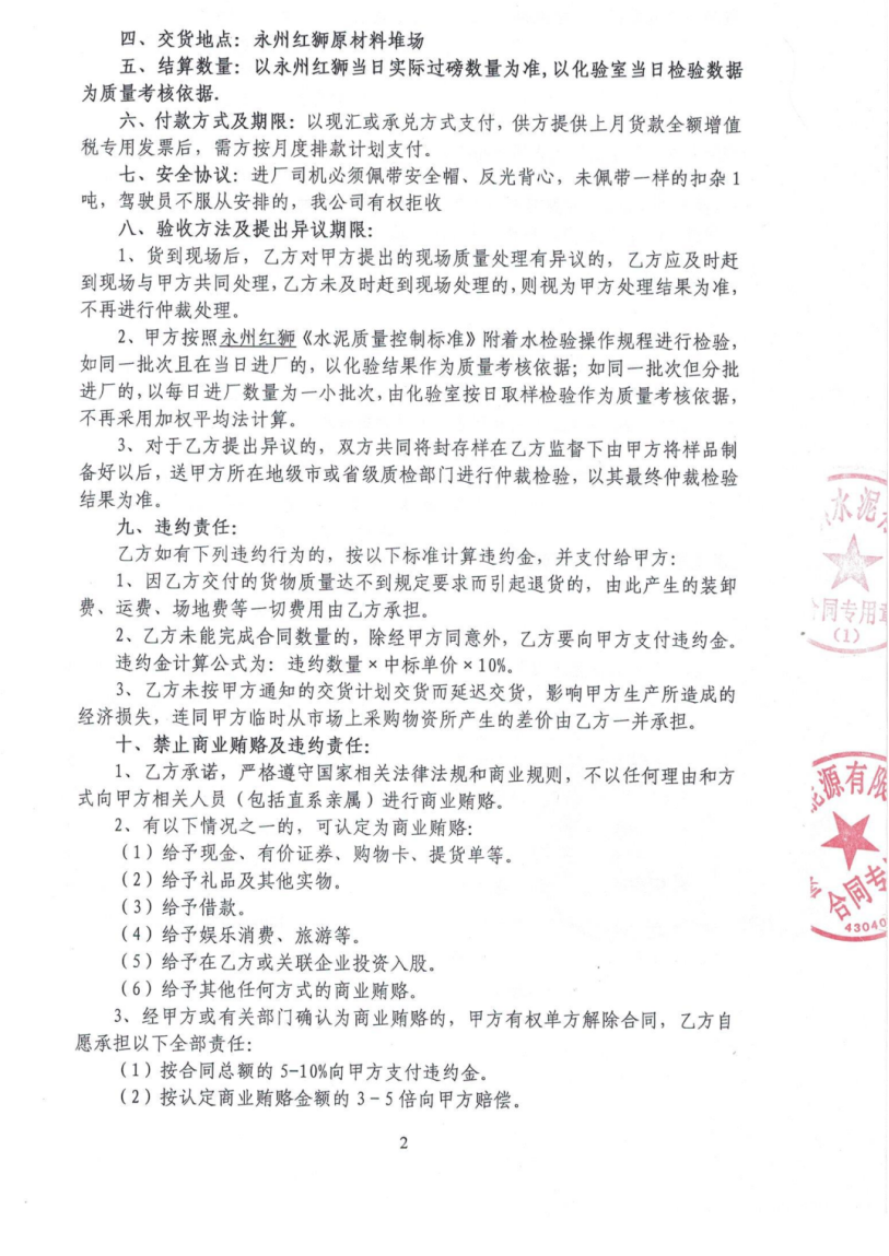 (5)永州红狮水泥有限公司与湖南顺隆能源有限公司粉煤灰购销合同