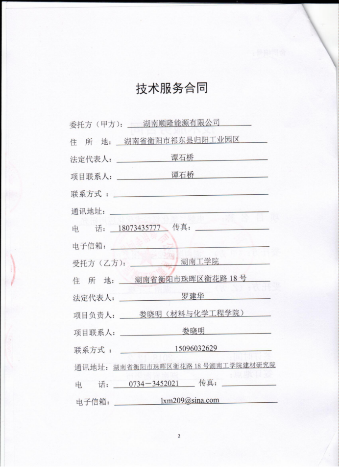 (2)技术服务合同—电解二氧化锰技术优化应用研究