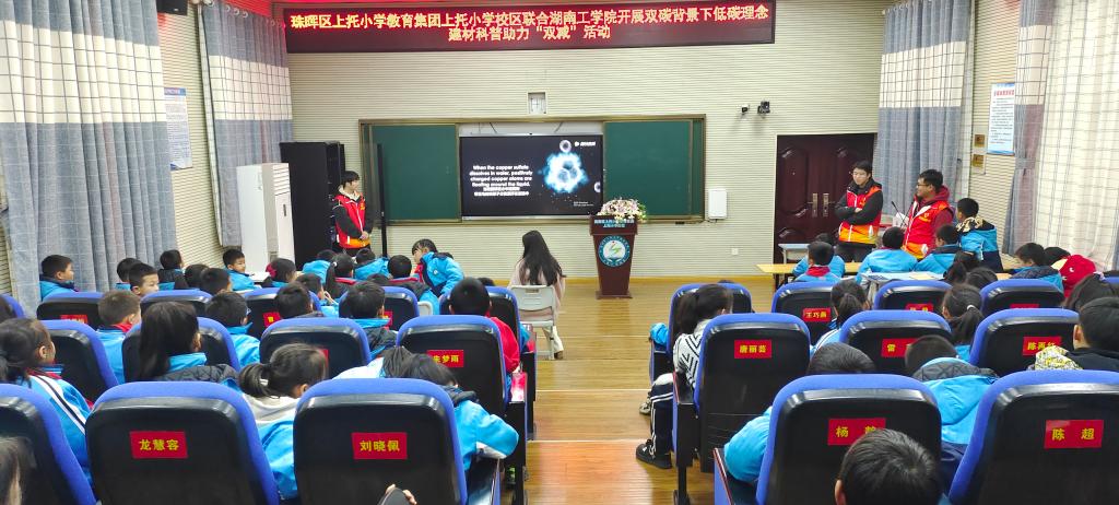 12月15日下午,新型建筑材料研究院院长娄晓明教授带领研究院的博士科普小队和best365唯一官方网站应化专业和无机非金属材料工程专业的科普志愿者,以及材料学院学生第三党支部的学生来到衡阳市珠晖区上托小学开展了“双碳背景下的低碳理念,建材科普助力‘双减’”科普主题活动和党支部活动。本次活动受到了上托小学伍丹书记、徐婷副校长等校领导和老师们的热情欢迎和大力支持。