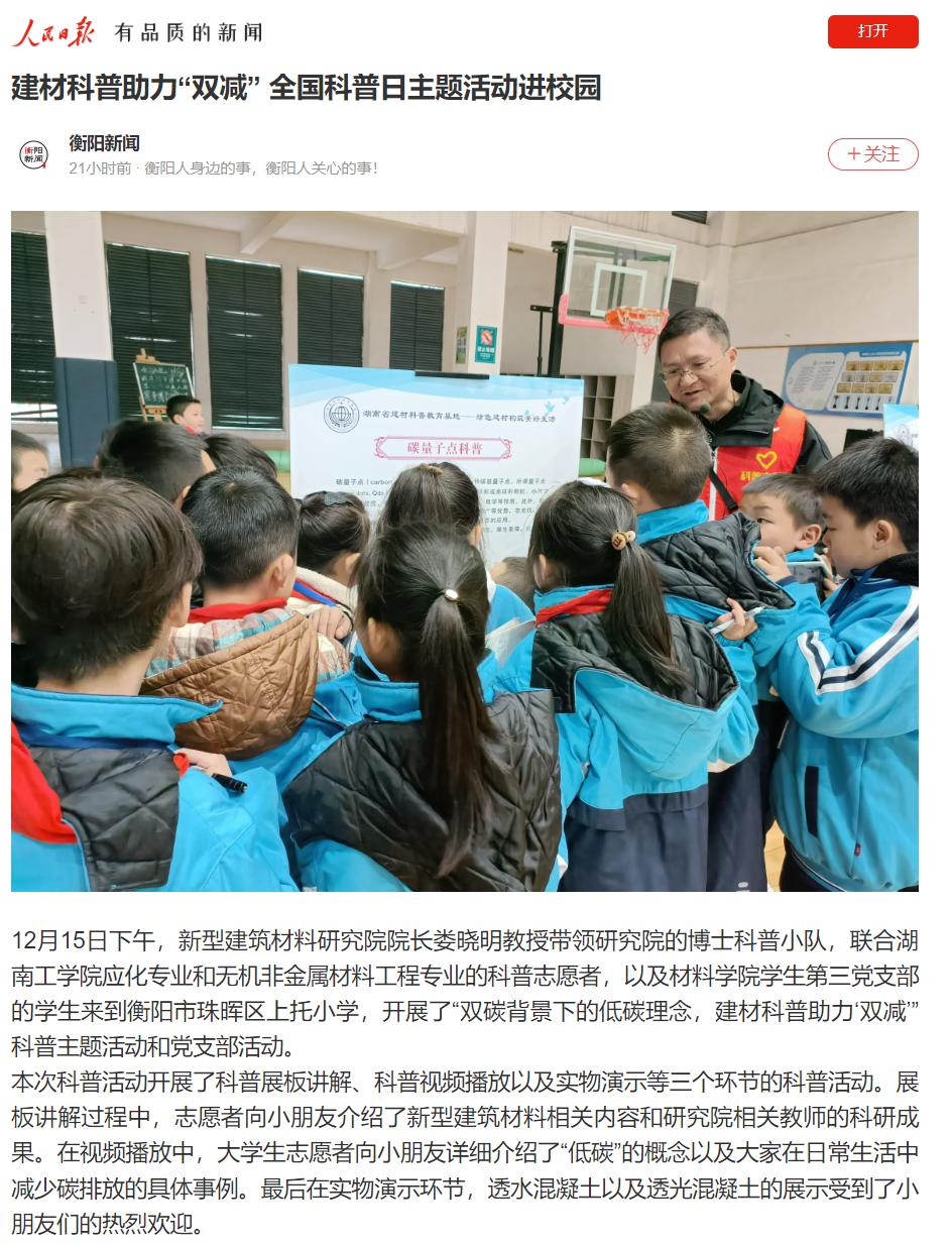 转人民日报:建材科普助力“双减” 全国科普日主题活动进校园