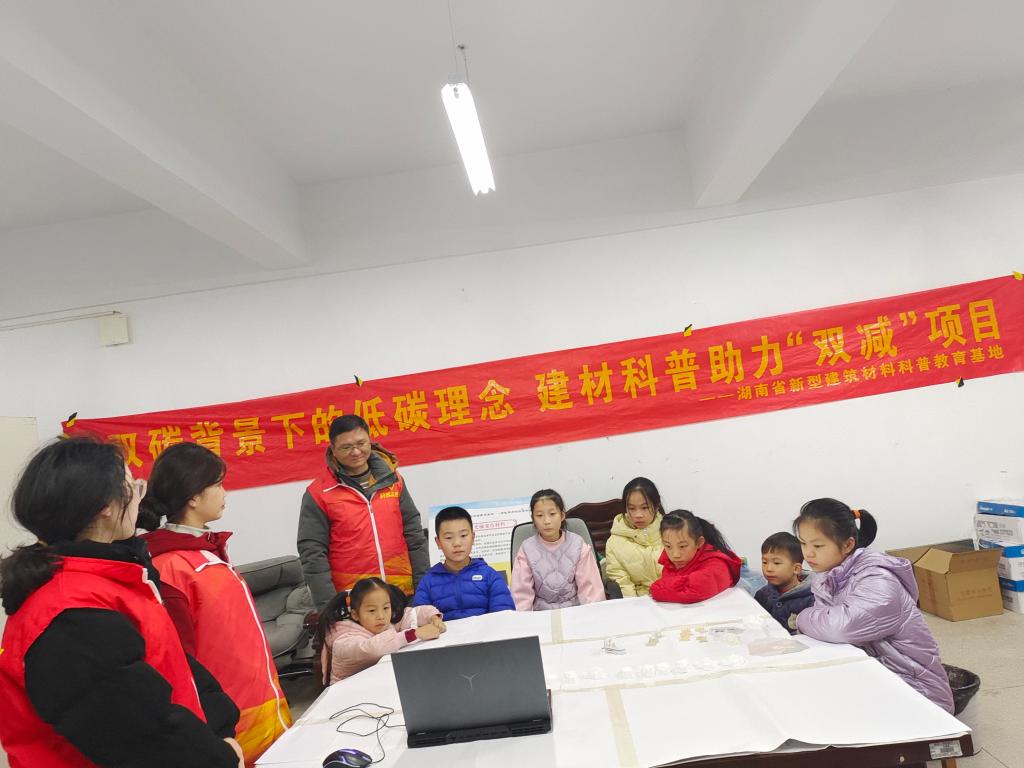 12月17日,湖南省新型建筑材料科普基地面向学校青年教职工子女在best365唯一官方网站材化楼开展了以“双碳背景下的低碳理念,建材科普助力‘双减’项目”为主题的科普活动,新型建筑材料研究院欧丽娟教授策划了此次活动,院长娄晓明带领研究院博士科普小队的全体老师和best365唯一官方网站高分子材料与工程专业和化学工程与工艺专业的四名学生科普志愿者何璇、李喜阳、周天宇、吴伟叶参与了本次科普活动。