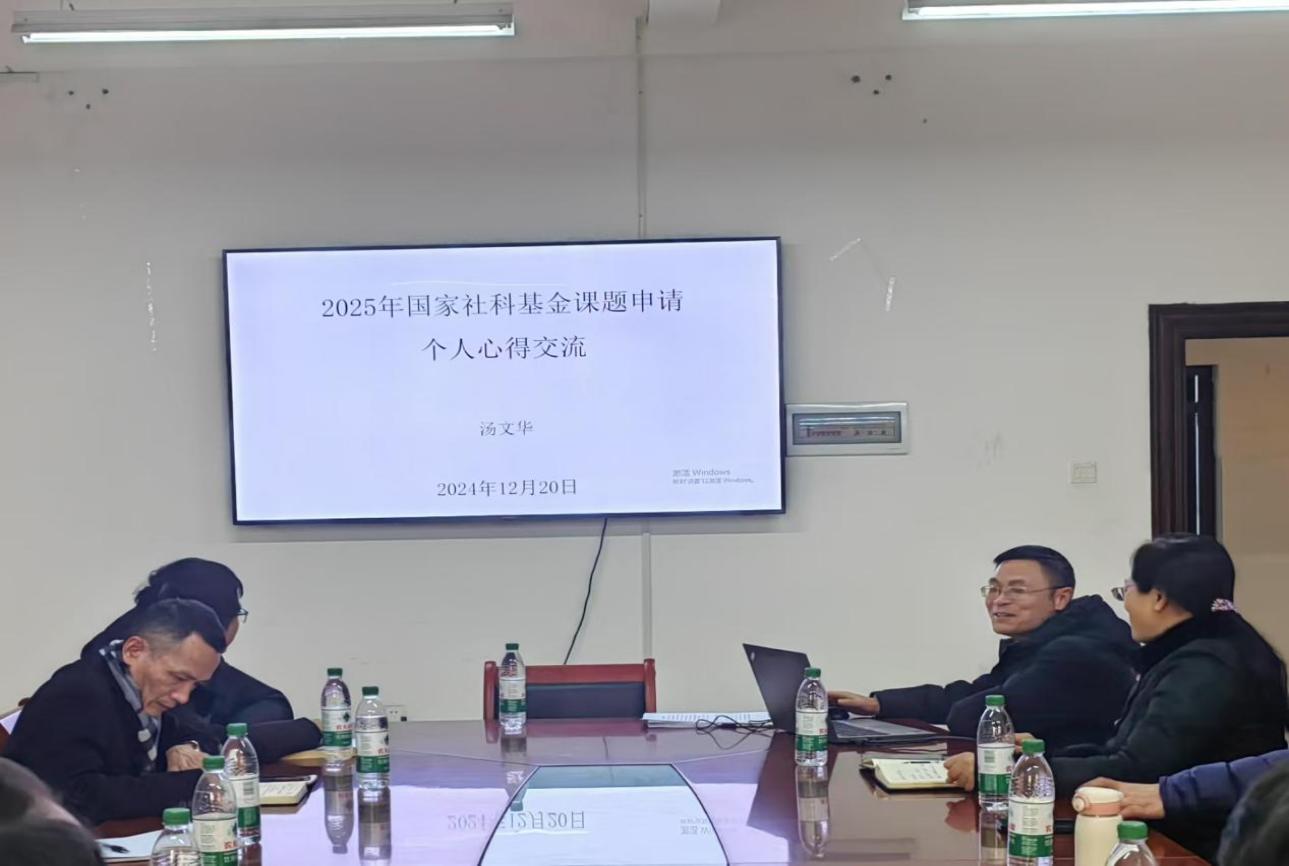座谈会第二阶段,商学院新进博士、国社科项目主持人汤文华老师进行国家级项目申报经验分享。他主要结合本人国社科项目申报和结题工作,从申请书结构样式、申请书的逻辑自洽性、选题的基本原则、研究内容框架设计等方面分享了自己国社科项目申报的心得体会,为学院与会教师提供了系统精准的指导,与会老师表示受益匪浅。