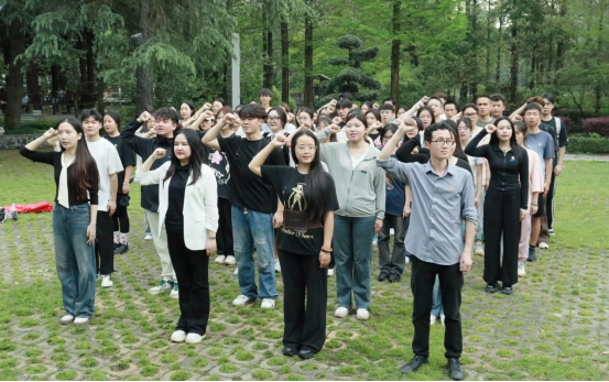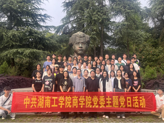 仰思先辈,重温入党(团)誓词。全体师生肃立在夏明翰烈士铜像广场,向革命烈士碑敬献花篮、默哀鞠躬,重温英烈事迹,深切缅怀革命先烈。在鲜红的党旗前,商学院辅导员李龙带领党员师生面向党旗重温入党誓词:“我志愿加入中国共产党,拥护党的纲领,遵守党的章程......”誓言铿锵有力在烈士陵园回荡。“革命先烈,浩气长存,万古流芳,永垂不朽!他们永远活在我们的心中!”商学院学工办主任段思遥给同学上主题党(团)课,勉励大家要牢记使命,坚定理想信念,把青春播撒在民族复兴的征程中,以奋进之青春担当民族复兴之重任!